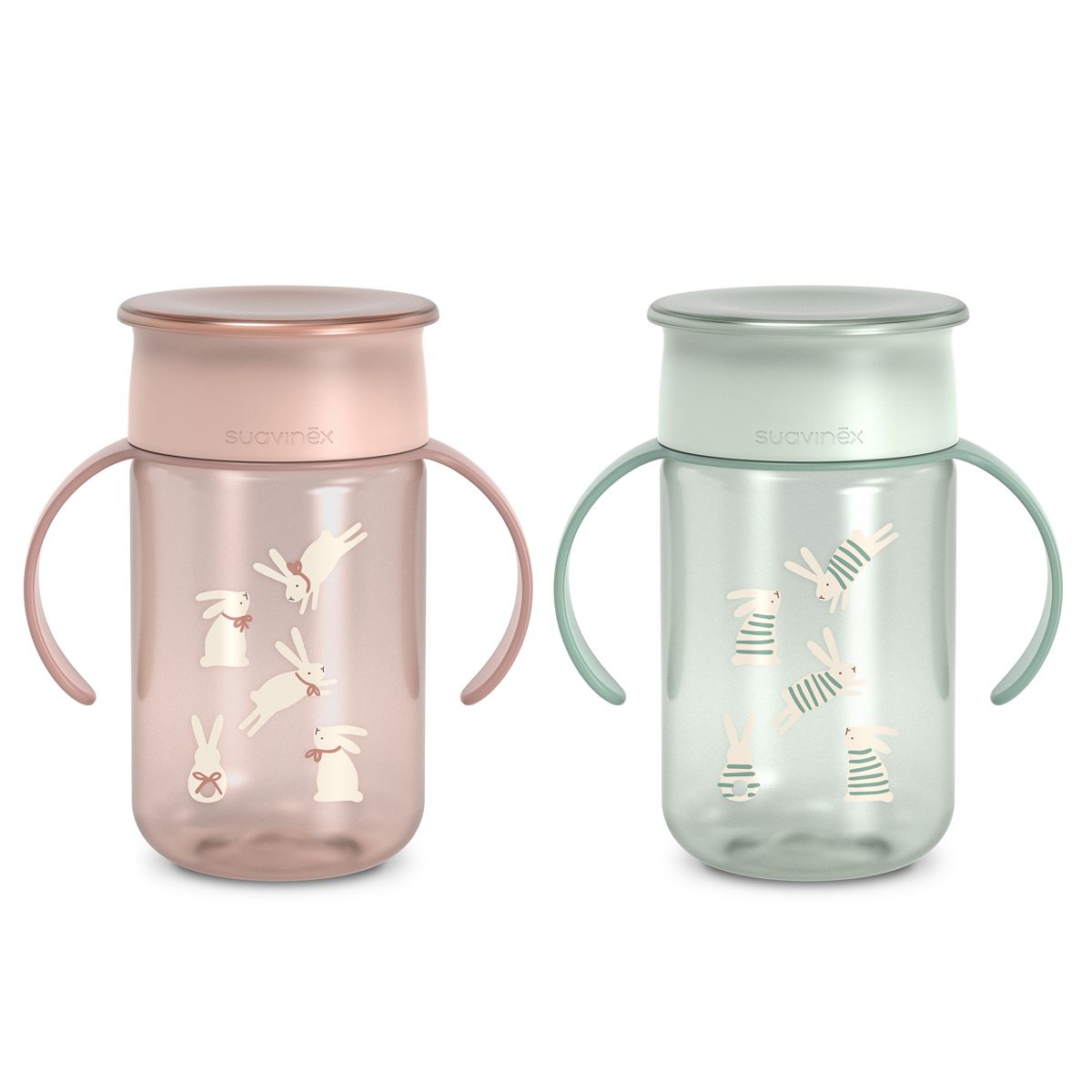 Tento detský pohár umožňuje piť z akejkoľvek strany okraja bez toho, aby sa tekutina rozliala. Nevylievací pohár 360° je ideálnou pomôckou na prechod na klasický pohár – bez kvapkania, bez škvŕn a bez zbytočného neporiadku.