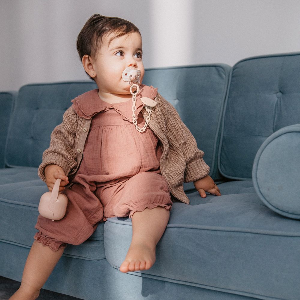 Je veľkým pomocníkom pre kľud vás i vášho dieťatka, či už pri spánku alebo na prechádzke. Je dokázané, že sanie cumlíka uvoľňuje endorfín, takzvaný hormón šťastia, ktorý prináša dieťatku príjemný ukľudňujúci pocit. Doprajte dieťatku cumlík miesto prstov či pestičky, pretože tento spôsob ukľudňovania môže veľmi porušiť budúci dentálny vývoj. Všetky cumlíky sú podporované a vyrábané v spolupráci s Asociáciou španielskych detských ortodontistov a rešpektujú prirodzený vývoj ďasien, zubov i podnebia dieťatka.
