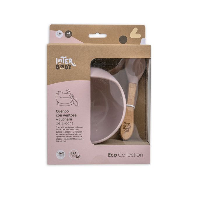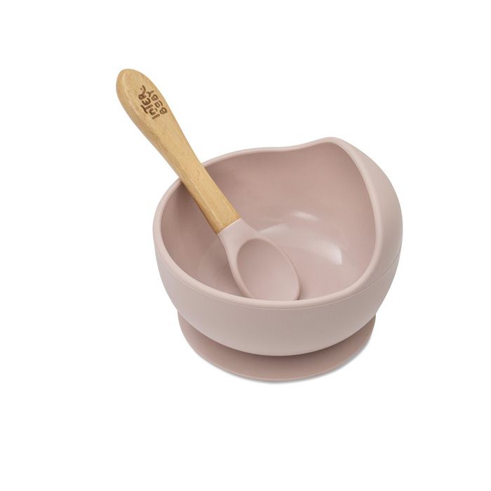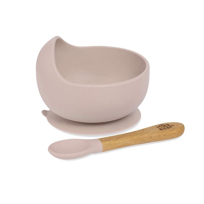 Krásná jedálenská súprava vyrobená z potravinárskeho silikónu a bukového dreva, ktoré znižuje výskyt baktérií na drevenom riade.