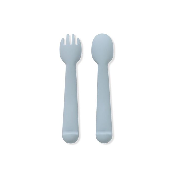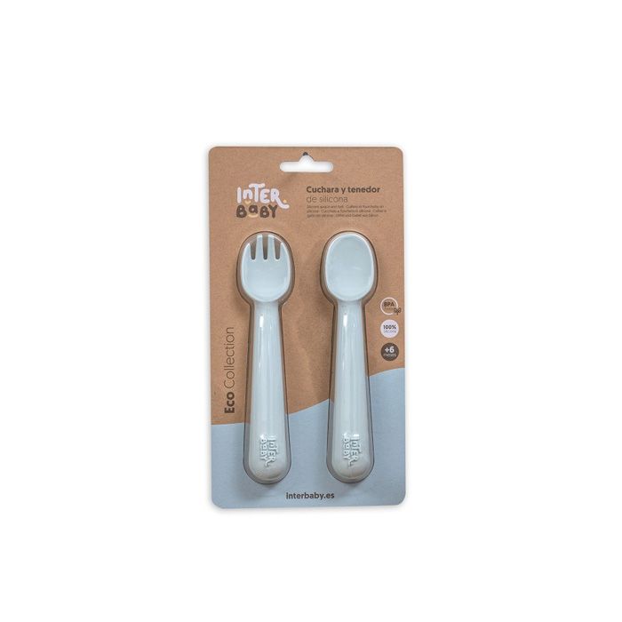INTERBABY | SET silikonová LYŽIČKA + VIDLIČKA - modrý