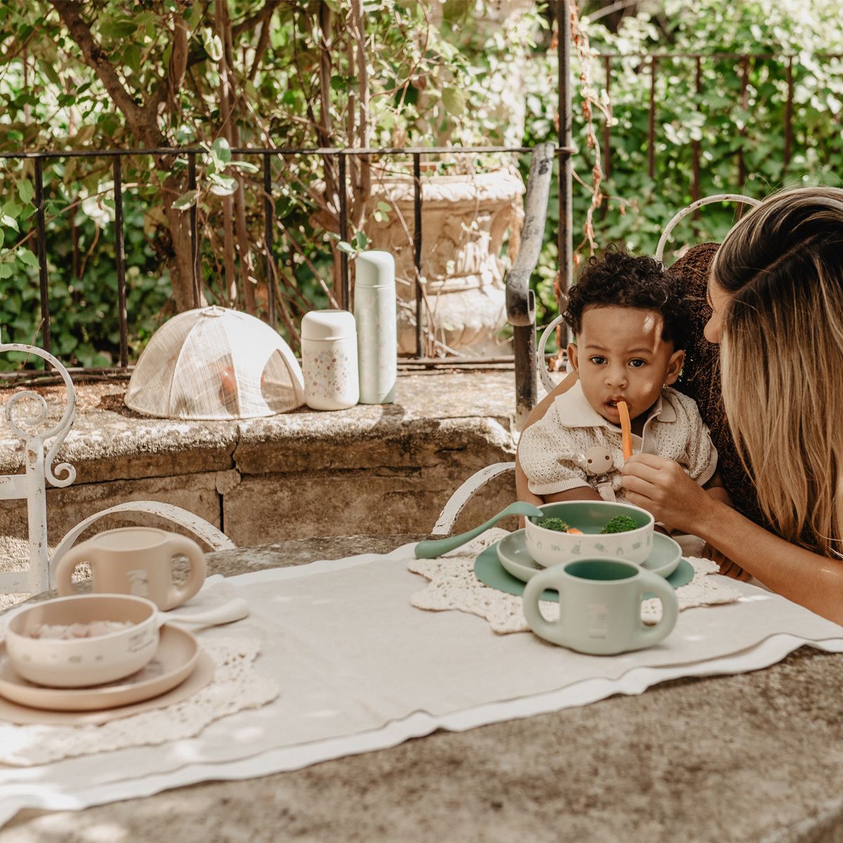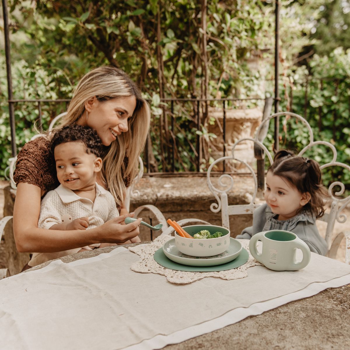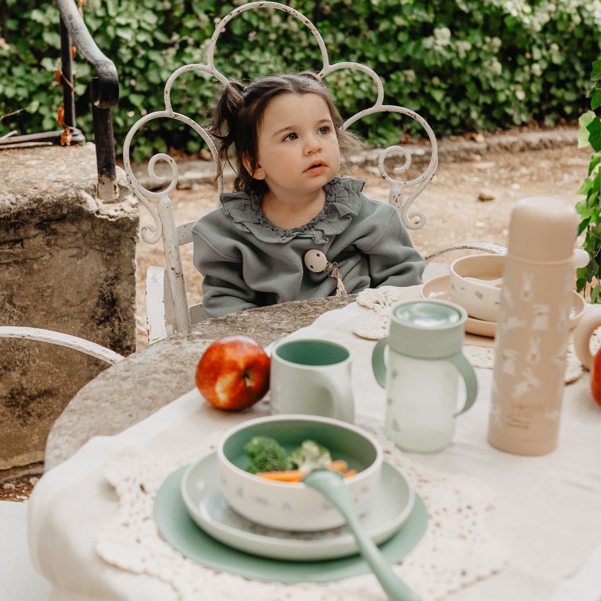 Sada je ľahká, jednoducho ovládateľná a ideálna pre malé detské ruky, takže ju dieťa môže používať aj samostatne. Odolný, nerozbitný materiál spolu s premyslenými tvarmi a zaoblenými hranami zabezpečujú maximálnu bezpečnosť a pohodlie pri každom jedle.