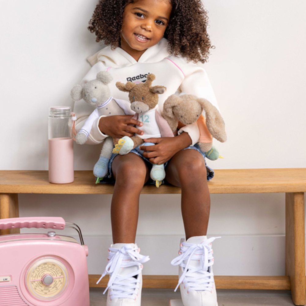 Tento rozkošný zajačik Ruby je pripravený na akciu so svojou štýlovou mikinou s kapucňou a cool kolieskovými korčuľami. Neprináša len radosť z maznania, ale tiež sa veľmi rád hrá. Či už sa chceš hrať, oddychovať alebo sa len pritúliť, Ruby je vždy pripravený na zábavu.