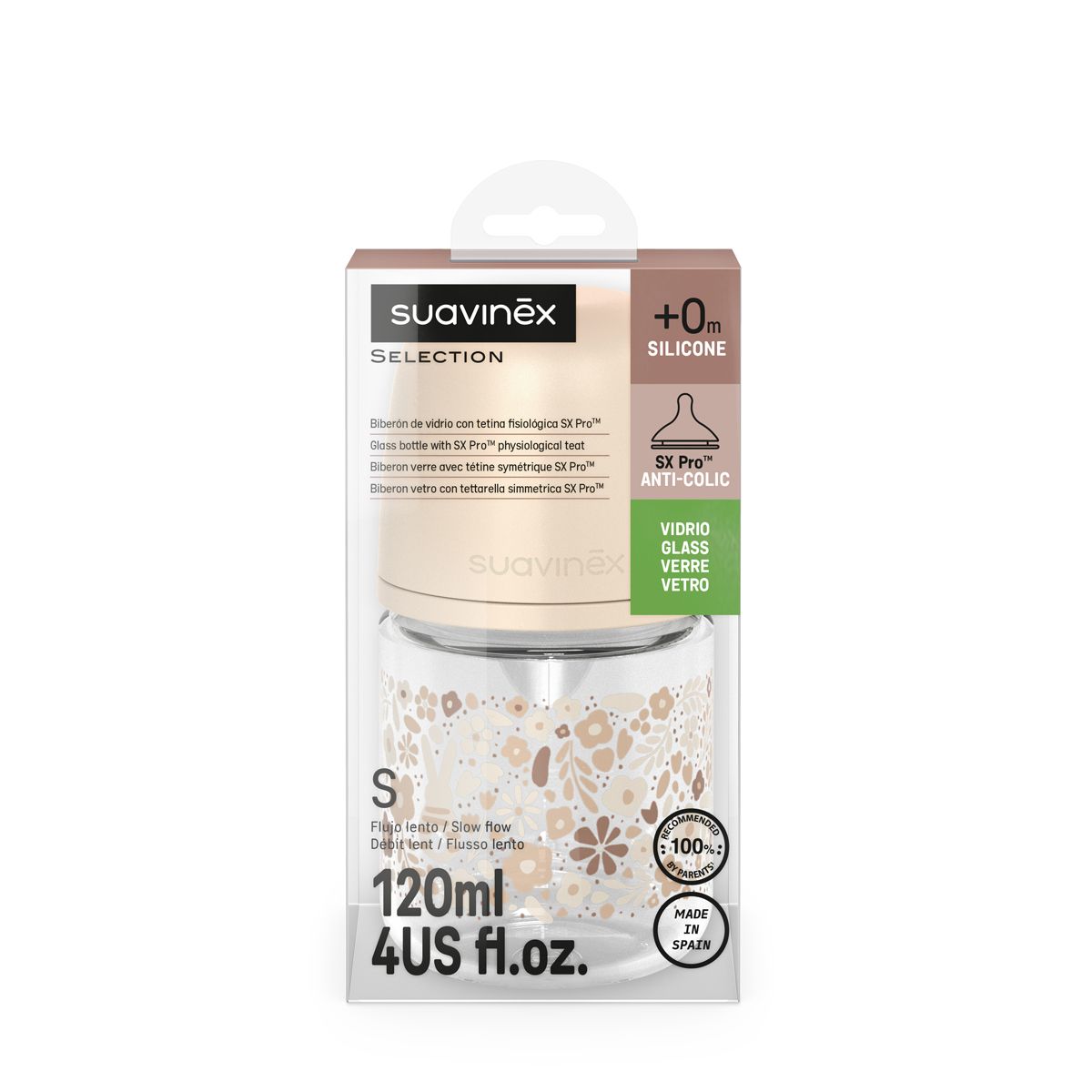 SUAVINEX | Fľaša sklo WONDERLAND NEW 120 ml fyziologická SX PRO +0 SF - krémový kvet