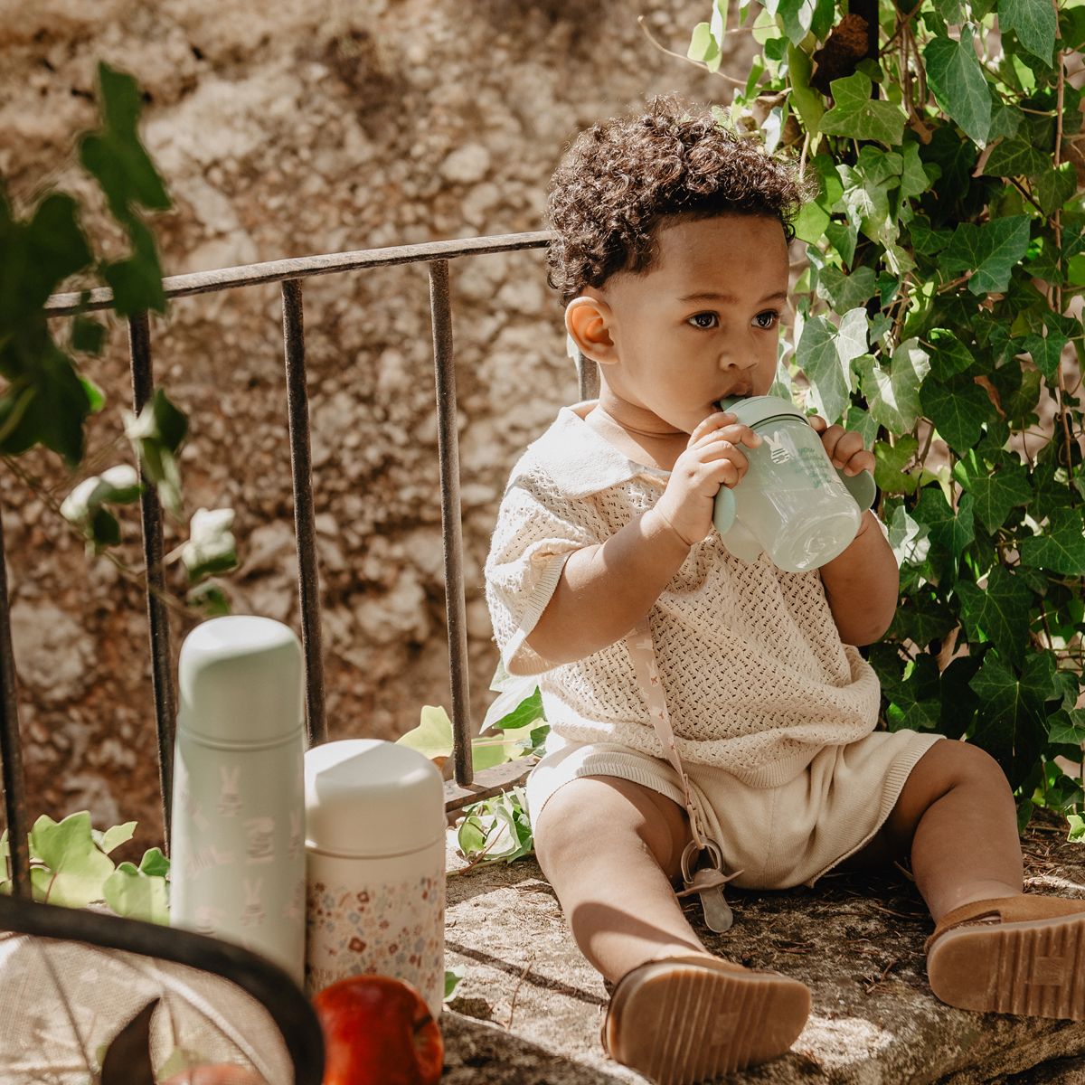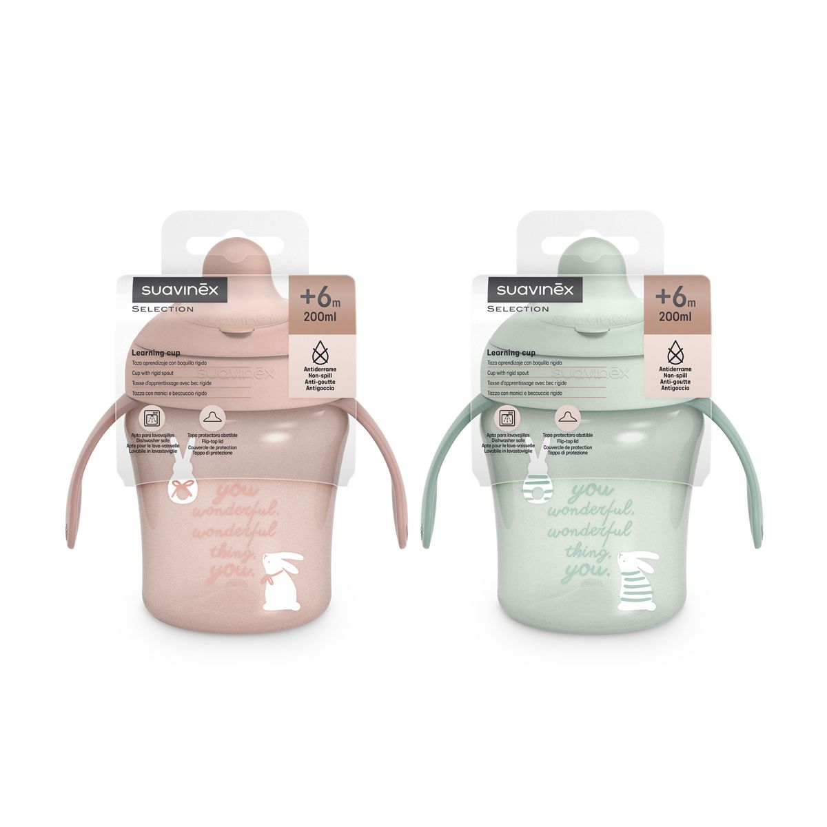 Hrnček s uškami a nerozlitným cumlíkom má ergonomický tvar a ušká pre dobrý úchop. Ušká sú odnímateľná pre prirodzený prechod na bežný hrnček či pohár. Nerozlitný cumlík zabraňuje odkvapkávaniu tekutiny a škvrnám. Je chránená výklopným hygienickým viečkom. Tvrdosť prispôsobená proti prokousnutí, zároveň príjemná a bezpečná pre drobná detské ústa.