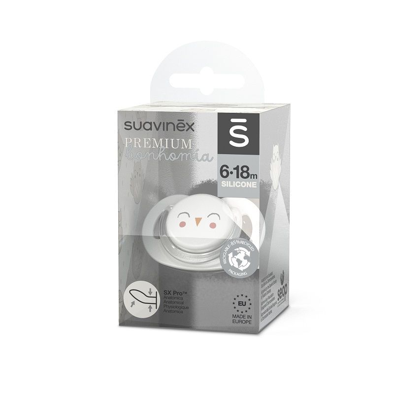 SUAVINEX | Cumlík SX PRO anatomický BONHOMIA 6/18 m SOVIČKA - biela