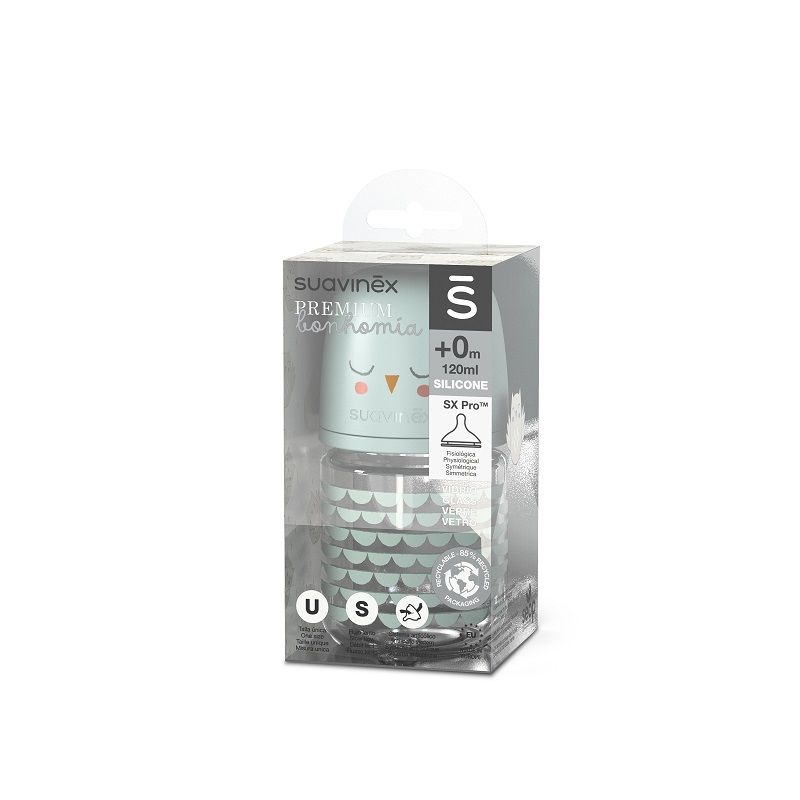 SUAVINEX | Fľaša sklo BONHOMIA 120 ml fyziologická SX PRO +0 SF - zelená
