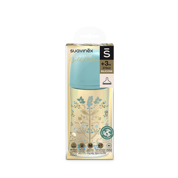 SUAVINEX | GOLD DOJČENSKÁ FĽAŠA 270ml FYZIOL PRŮTOK M - modrá