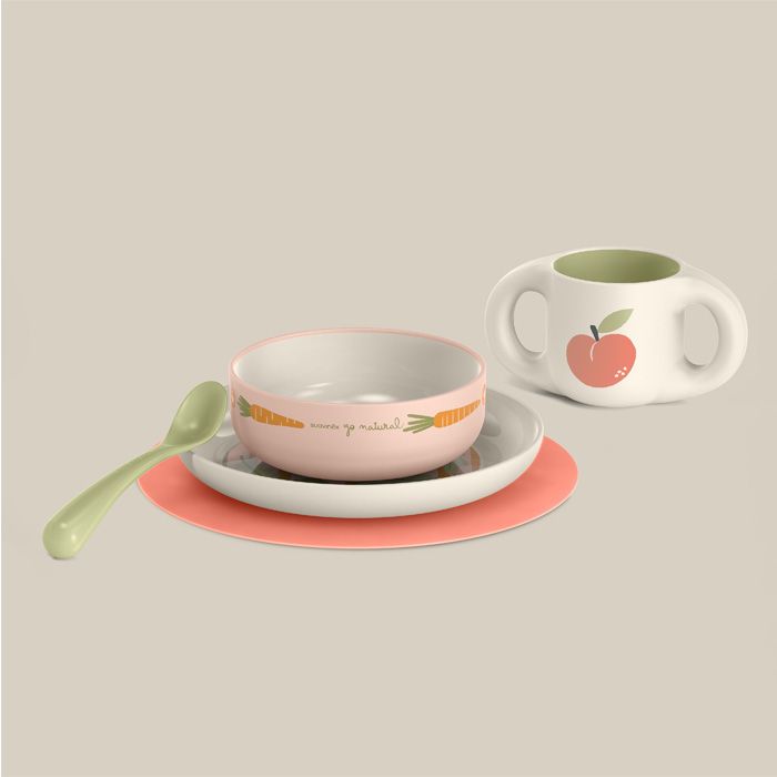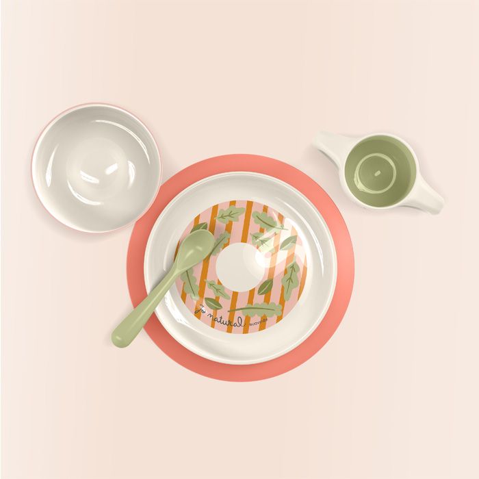 Sú praktické, ľahké (vďaka ľahkosti ich môže dieťa pohodlne používať samo) a nerozbitné. Ich tvary a zaoblené hrany dodávajú nutnú bezpečnosť, aby sme deti bez obáv nechali jesť samostatne. Obsahuje praktickú protišmykovú podložku, aby tanierik nešmýkal.