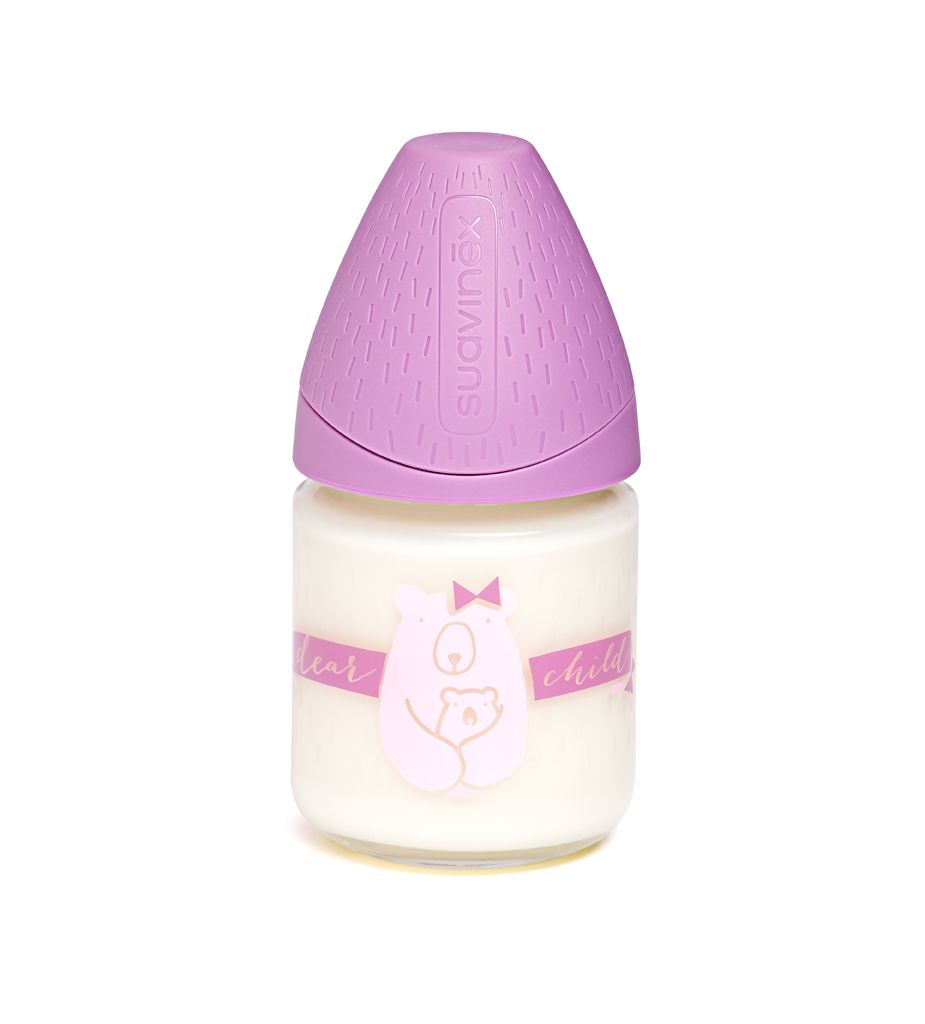 SUAVINEX | MFL FĽAŠA SKLO 120 ml - FIALOVÁ/MACKO