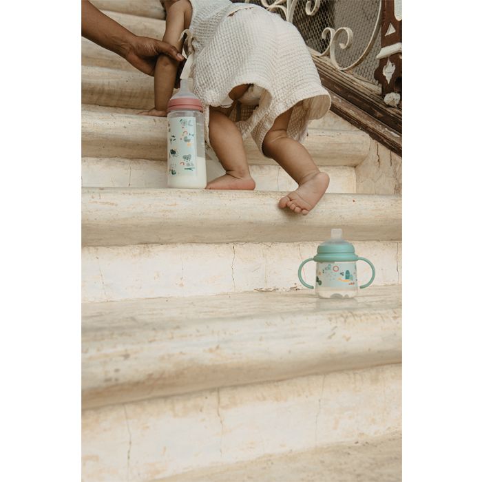 Prvá fľaša s uškami so špeciálnym SX Pro TM antikolikovým cumlíkom uľahčuje prechod z dojčenskej fľaše na pitie z hrnčeka či pohára. Silikónový náustok je mäkké a materiálovo zhodné s cumlíky dojčenských fliaš a cumlíkov SX Pro TM . Preto ho Vaše deti prijmú rýchlejšie ako bežný tvrdý náustok.
