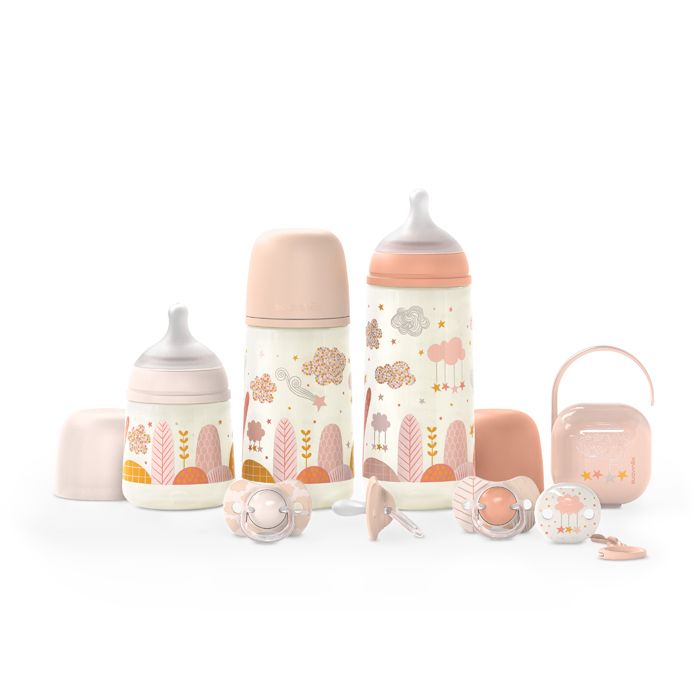 SUAVINEX | Sada fľaša 270ml + cumlík fyziologický 0/6m + klip Dreams - ružová