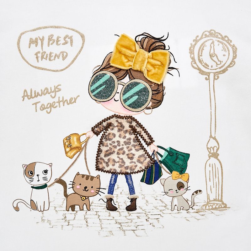 Hezké tričko s malou parádnicí a jejími třemi kočičkami je možné velmi pěkně kombinovat.
